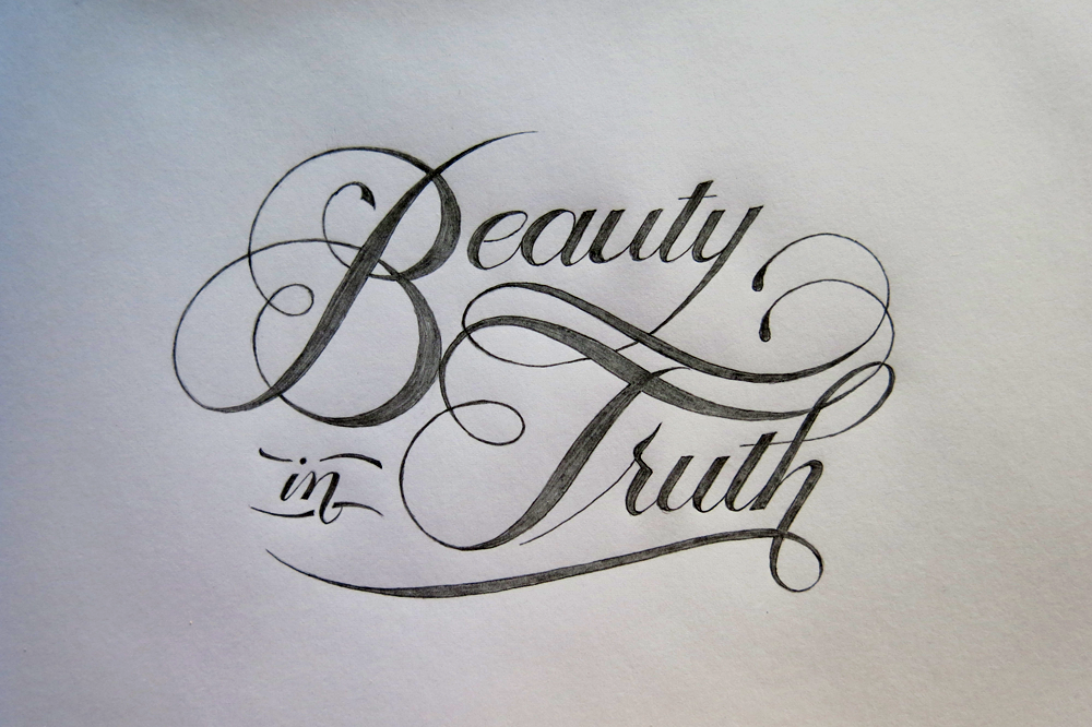 Beauty in Truth: some experimentation with flourishing and ornamentation in a Copperplate style. I also incorporated the style of B I used in my Drop Cap a Day Inktober project.