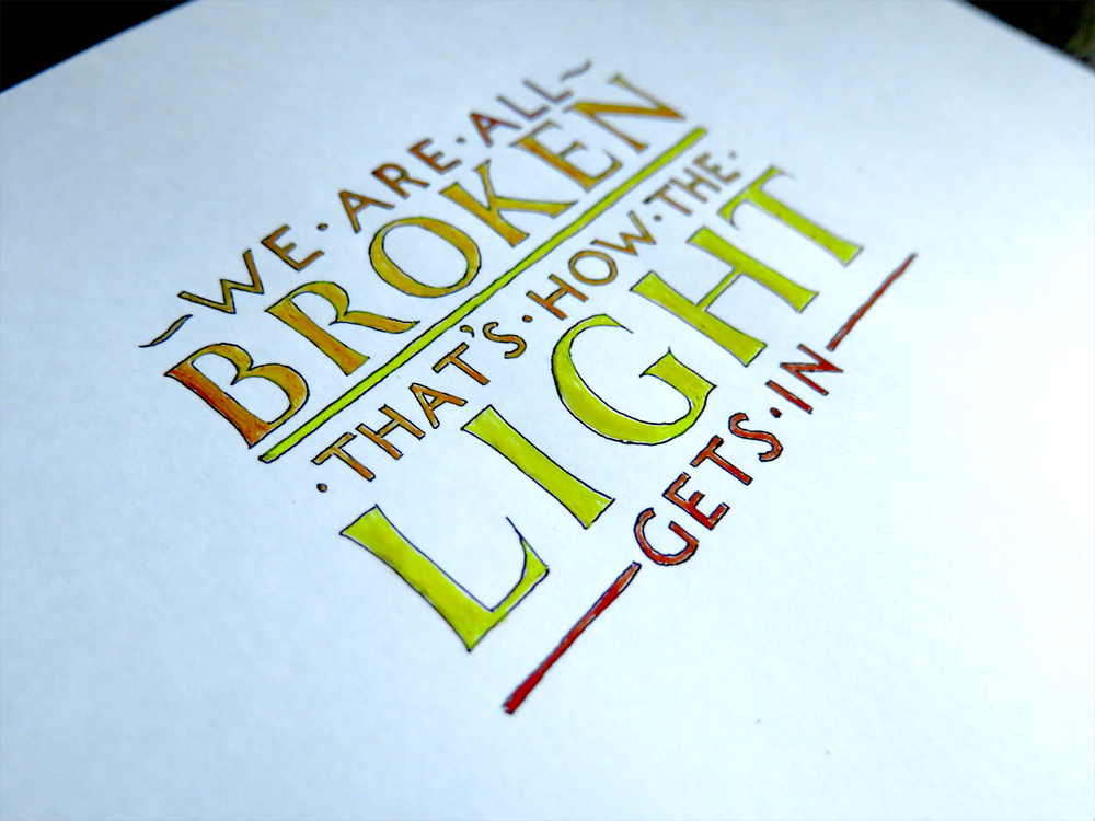 “We are all broken. That’s how the light gets in.” You’ll find this quote in various places attributed to Ernest Hemingway, but it’s more likely that it’s just a slightly modified version of a Leonard Cohen lyric from the song Anthem.