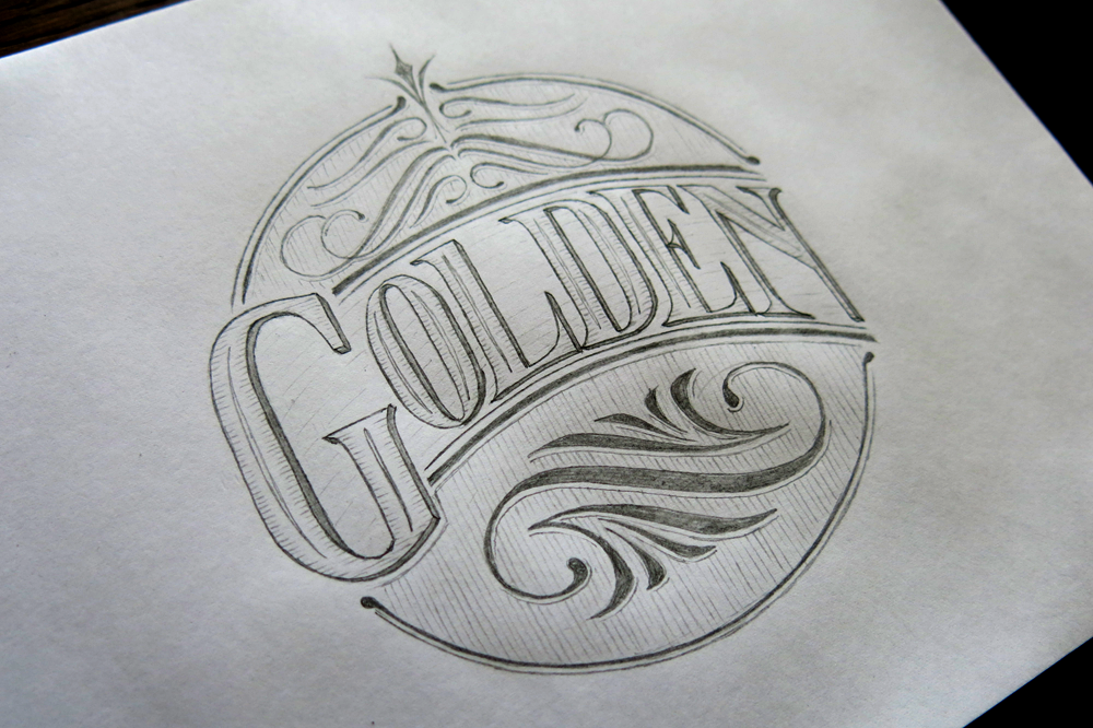 “Golden.” A single word piece to practice some flourishes and some tall letters in a circular design.